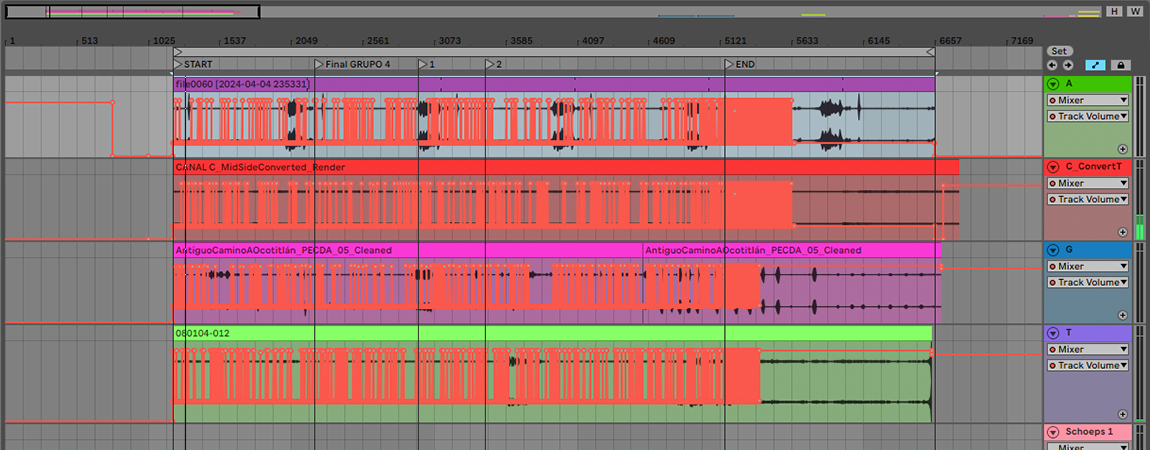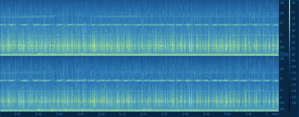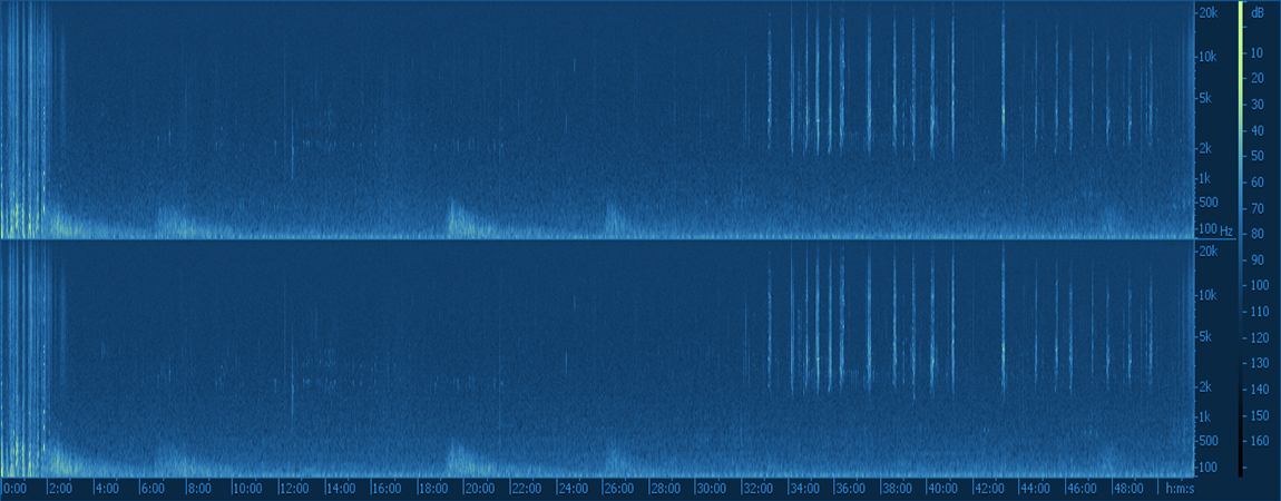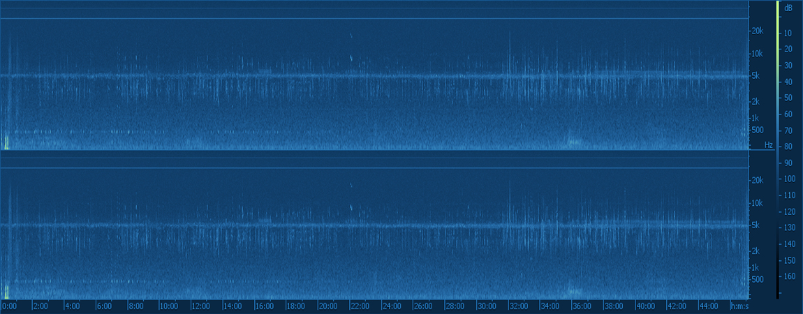Se hicieron grabaciones de campo de larga duración en 4 hábitats durante las recolecciones, y se generó un banco de registros que funcionó como materia prima para la composición de la obra final.
