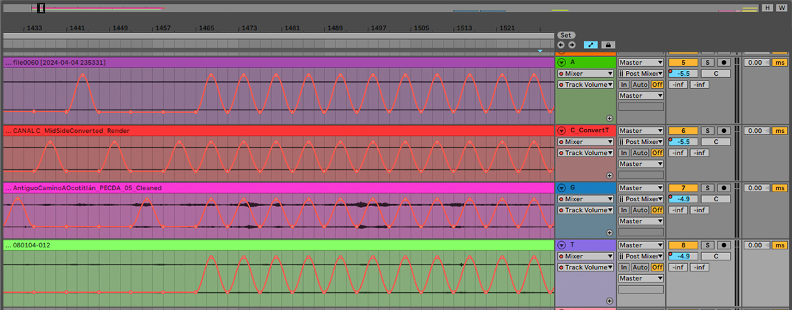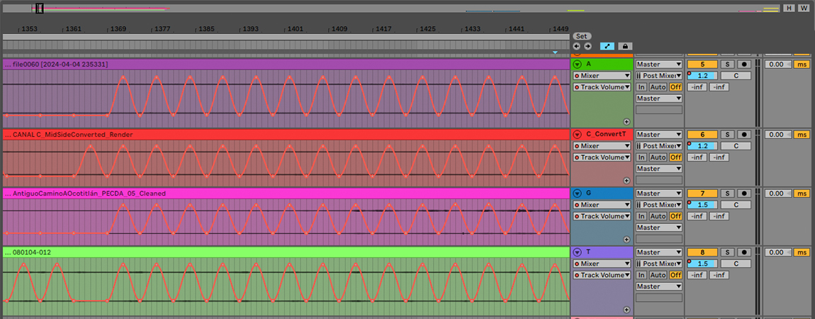 Cada uno de las 4 tipos de nucleobases que conforman la secuencia de ADN, activa un altavoz dentro del sistema cuadrafónico que reproduce la grabación de campo correspondiente a una de las 4 locaciones donde se llevaron a cabo las colectas; la calidad de la expresión de cada base se aplicó a parámetros como amplitud, tono, oscilaciones de baja frecuencia, ondas sonoras simples, filtros de frecuencia y generadores de ruido.